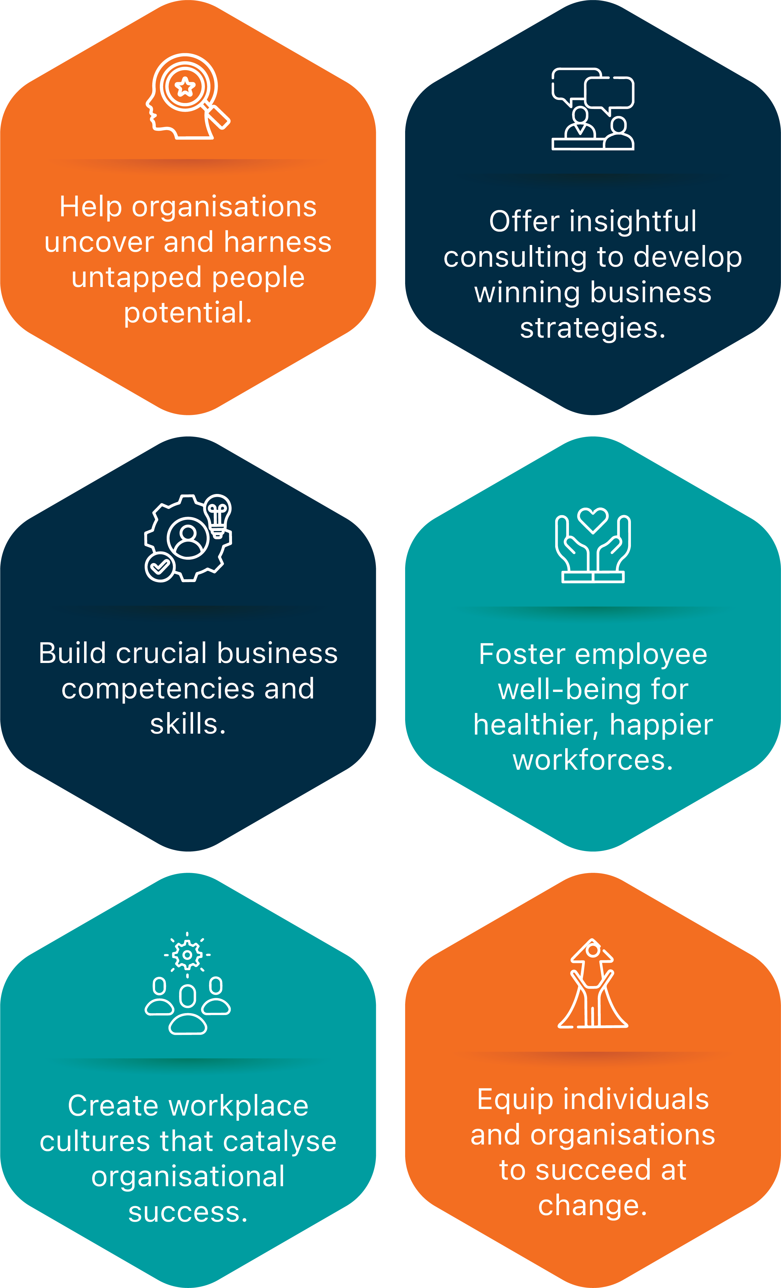 Through our signature workshops, international certifications, assessments, and consulting, we strategically enhance skills and competencies at all organisational levels, from the shop floor to the C-suite. We take a multi-faceted approach to helping our clients drive transformation and navigate the shifting future of work with leadership, change, and culture at the heart of all our interventions.